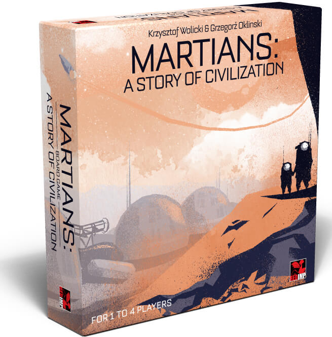 Το Martians: A Story of Civilization είναι ένα παιχνίδι συνεργασίας κι εξερεύνησης στο διάστημα για 1-4 παίκτες, με worker placement και city building μηχανισμούς. Η θεματολογία του μας θυμίζει αρκετά το Terraforming Mars και ίσως λιγότερο το Mission: Red Planet (second edition), οπότε θα μπορούσαμε να πούμε πως τα τρία αυτά παιχνίδια ανήκουν στην ίδια «οικογένεια». Φαίνεται να είναι ένα ενδιαφέρον παιχνίδι, ειδικά αν σας ελκύουν τα science fiction και civilization επιτραπέζια.
